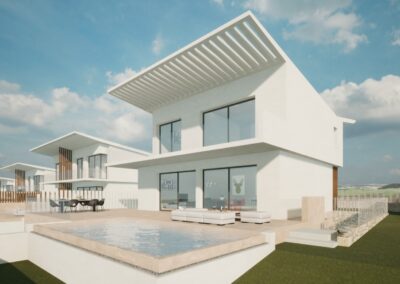 Gracias a su ubicación elevada y orientación sur-sureste, todas las villas cuentan con espectaculares vistas abiertas al mar y a los valles verdes, disfrutando de luz natural y sol durante todo el día.